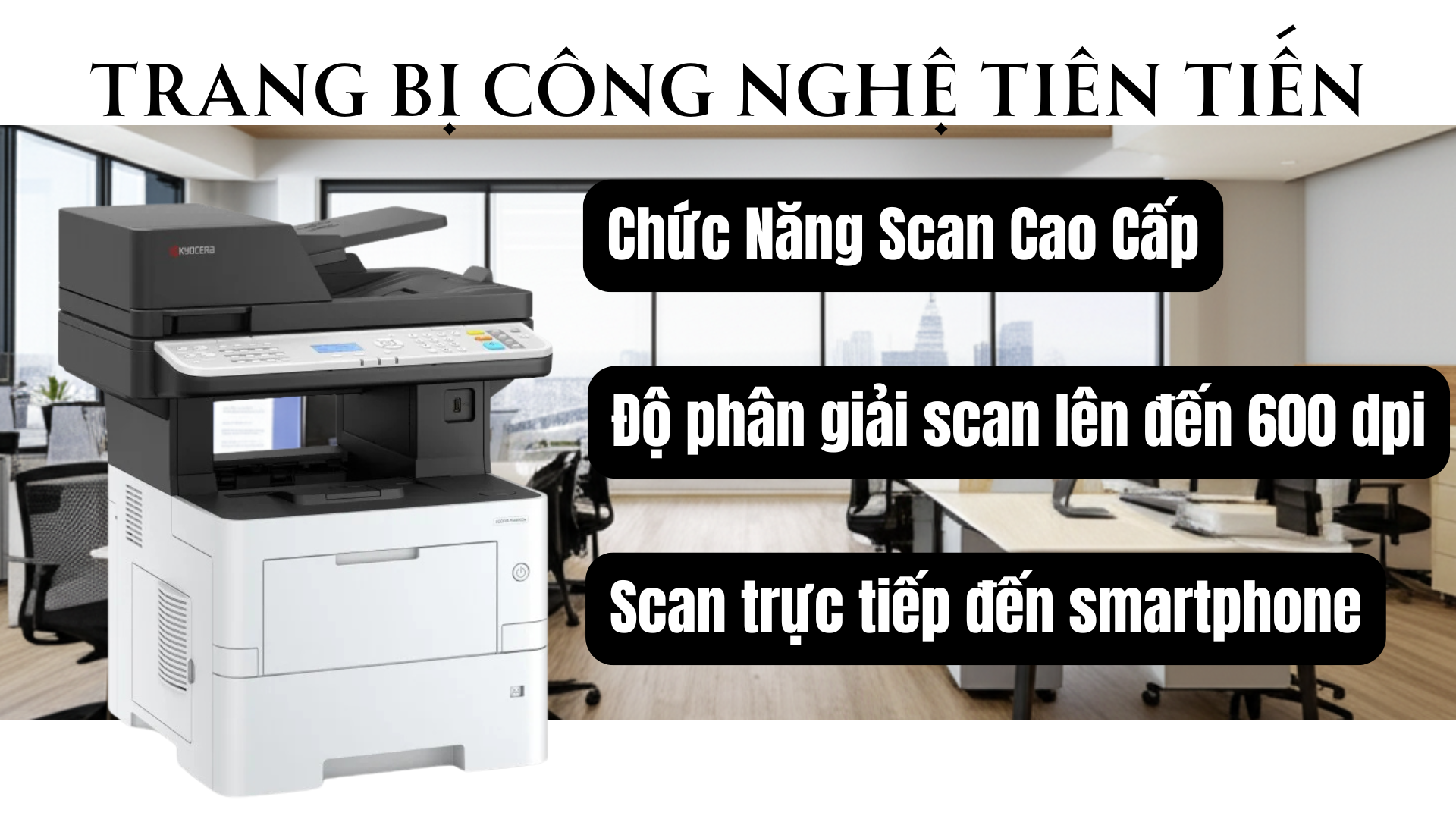 | Chức năng Scan | Scan to Folder (SMB), to Email (SMTP), to FTP/USB, to smartphone, TWAIN, WSD, WIA |
