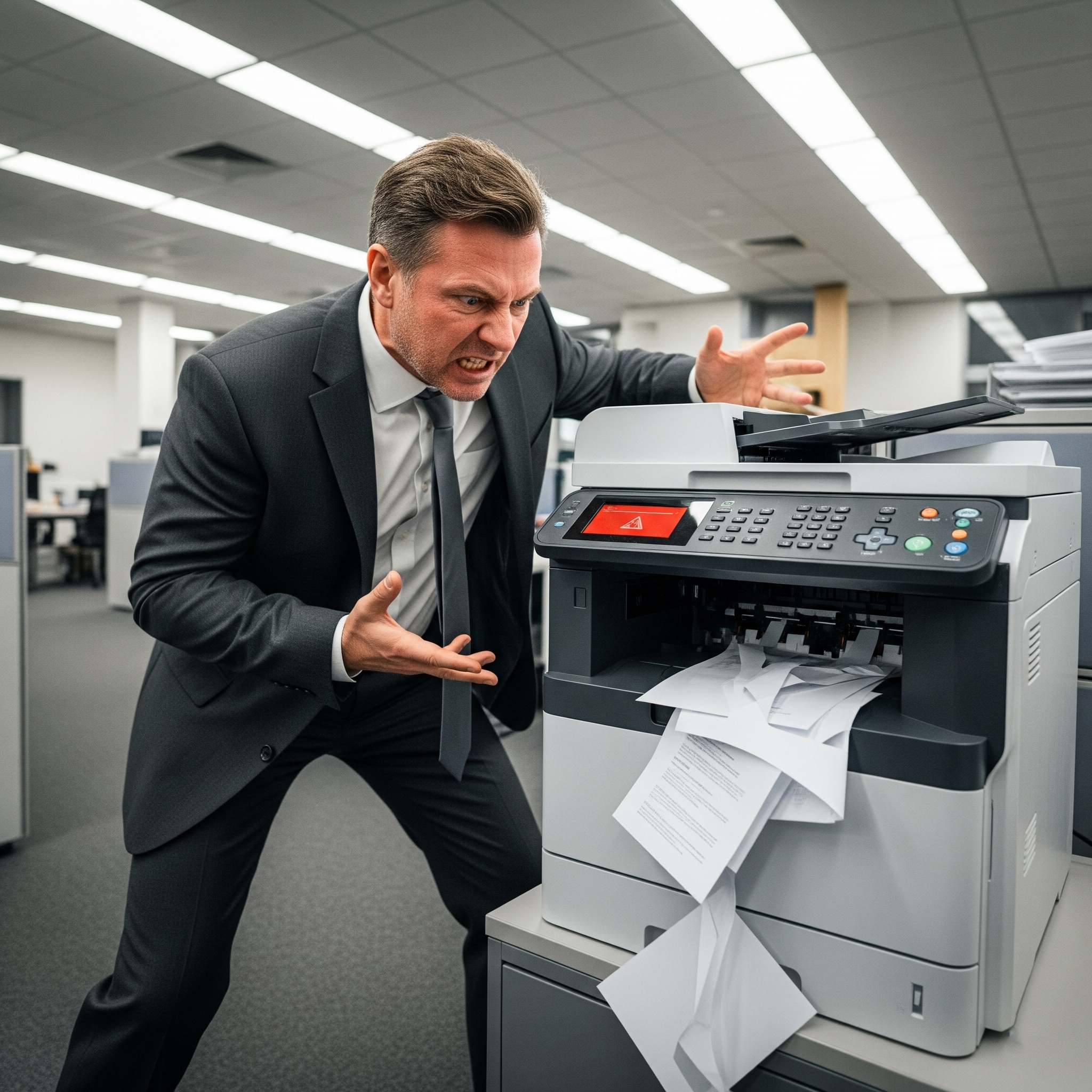 + Sự bực bội: Máy liên tục kẹt giấy, báo lỗi, cần sửa máy in thường xuyên.